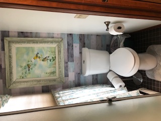 Since it's a safe haven for me and my girls (chickens), I decided to girlify the dirty ole mudroom so it's more of an enjoyable place for us. It probably doesn't surprise you that I decided to decorate my sanctuary with birds, since I'm crazy obsessed about them. I love wall decals. It's a quick and easy way to change a room, and when you're done with a certain look, they peel off the wall as easily as a sticker....easy peasy. Below is a before and after picture of the small bathroom. I added the decals to give the bathroom a distressed wood look behind the toilet. I'm super pleased with how it turned out. Notice I don't have any pictures taken behind the toilet. It got a little dicey and stinky back there while I was applying the decals....definitely not my best work, but the toilet and texture looking decals do an excellent job of disguising my mistakes.